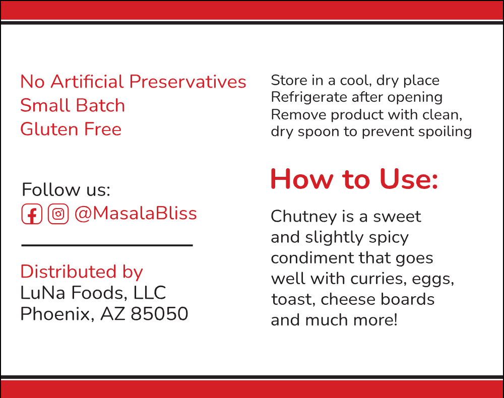Our Apple Chutney is made with all natural, preservative-free ingredients.